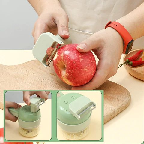 🔪 Superferramenta 4-em-1 – Fatie, pique, descasque e limpe em segundos.