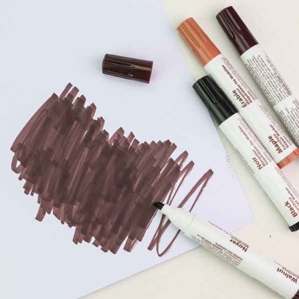 Com 8 marcadores e 8 lápis de cera em tons de carvalho, cerejeira, nogueira, mogno, ácer, preto, cinzento e branco, o nosso kit permite-lhe combinar na perfeição qualquer superfície danificada. Combine e misture as cores para obter o restauro ideal da madeira.