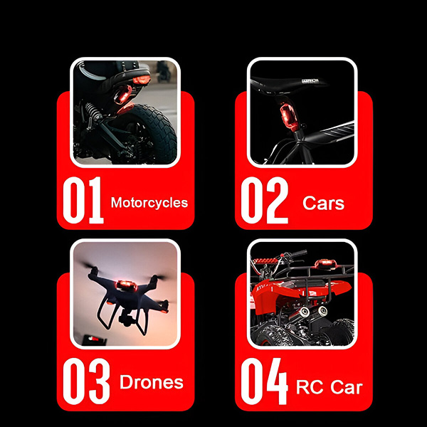 A maioria das luzes exige suportes, parafusos ou modificações permanentes que não funcionam em veículos diferentes. O STROBIES fixa-se em segundos usando almofadas de velcro ou anéis de borracha – sem ferramentas, sem perfurar, sem danos ao seu veículo. Alterne-o entre o seu carro, mota, bicicleta, drone, capacete ou mochila sempre que precisar.